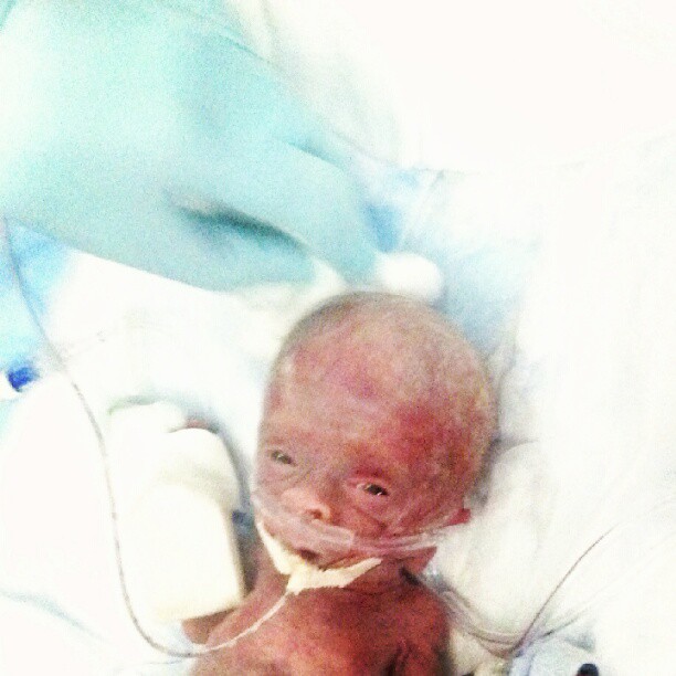 - His first hat. A Bob Marley Fan nurse must have picked it.